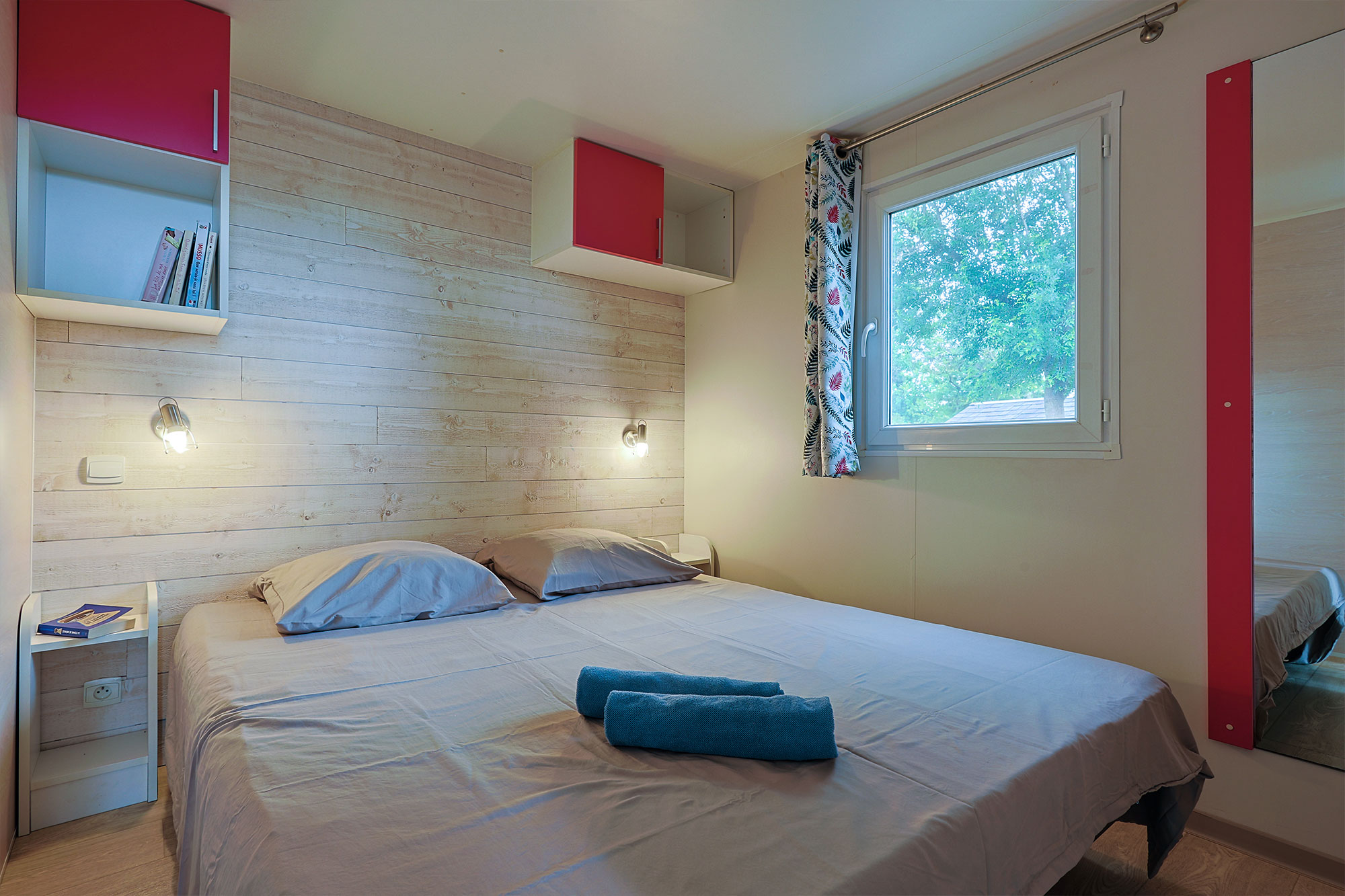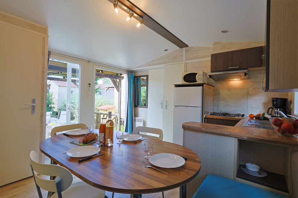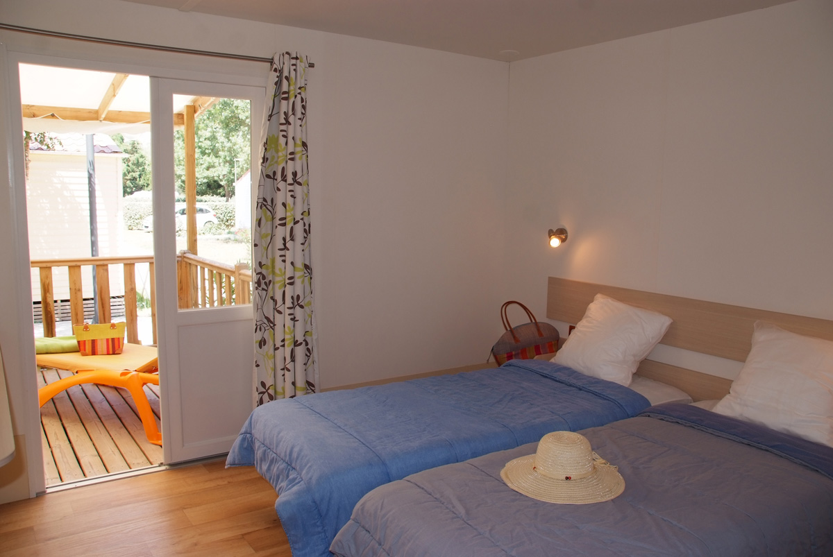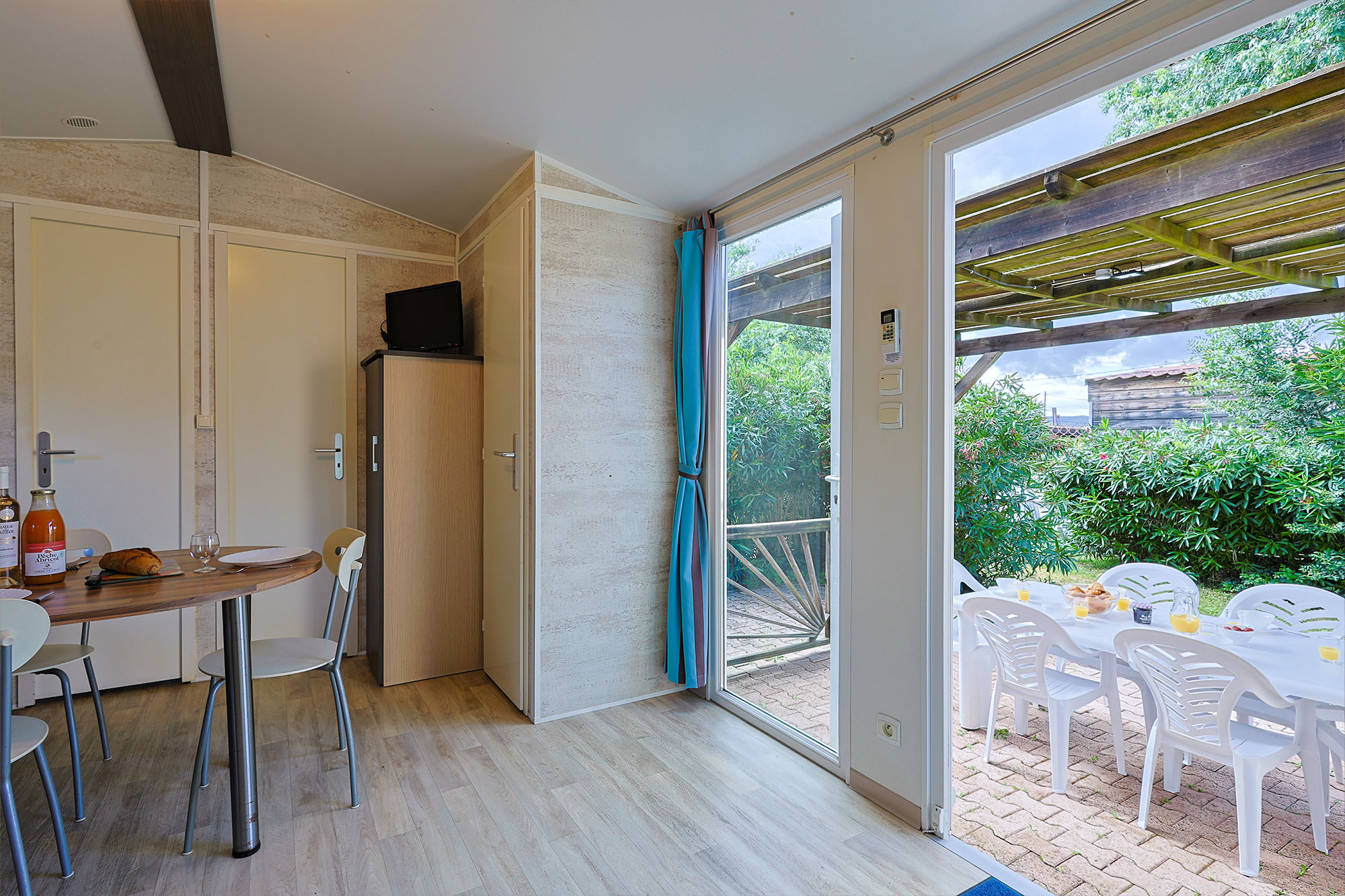 Residence 30 m² optioneel air. 2 kamers: een kamer met een bed van 140 cm of 160 x 190 cm (afhankelijk van beschikbaarheid), 1 kamer met 2 bedden 80 cm x 190 cm + omgezet in een lounge bed slaapt twee. Elektrische verwarming, tv, kluis, magnetron, gasfornuis, koffiezetapparaat, koelkast met vriesvak, douche en toilet apart. Pergola met tuinmeubelen en ligbedden. een voertuig.