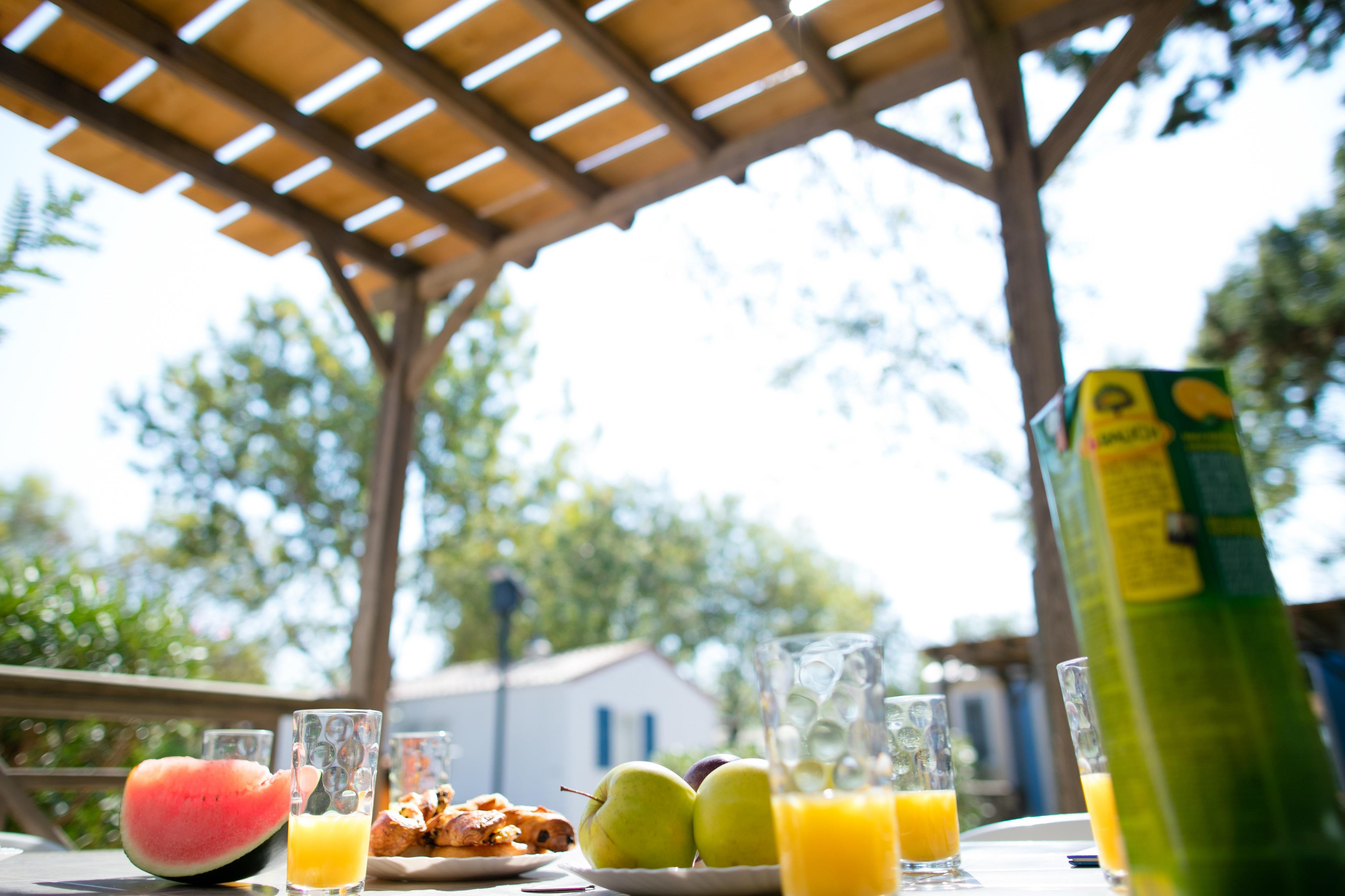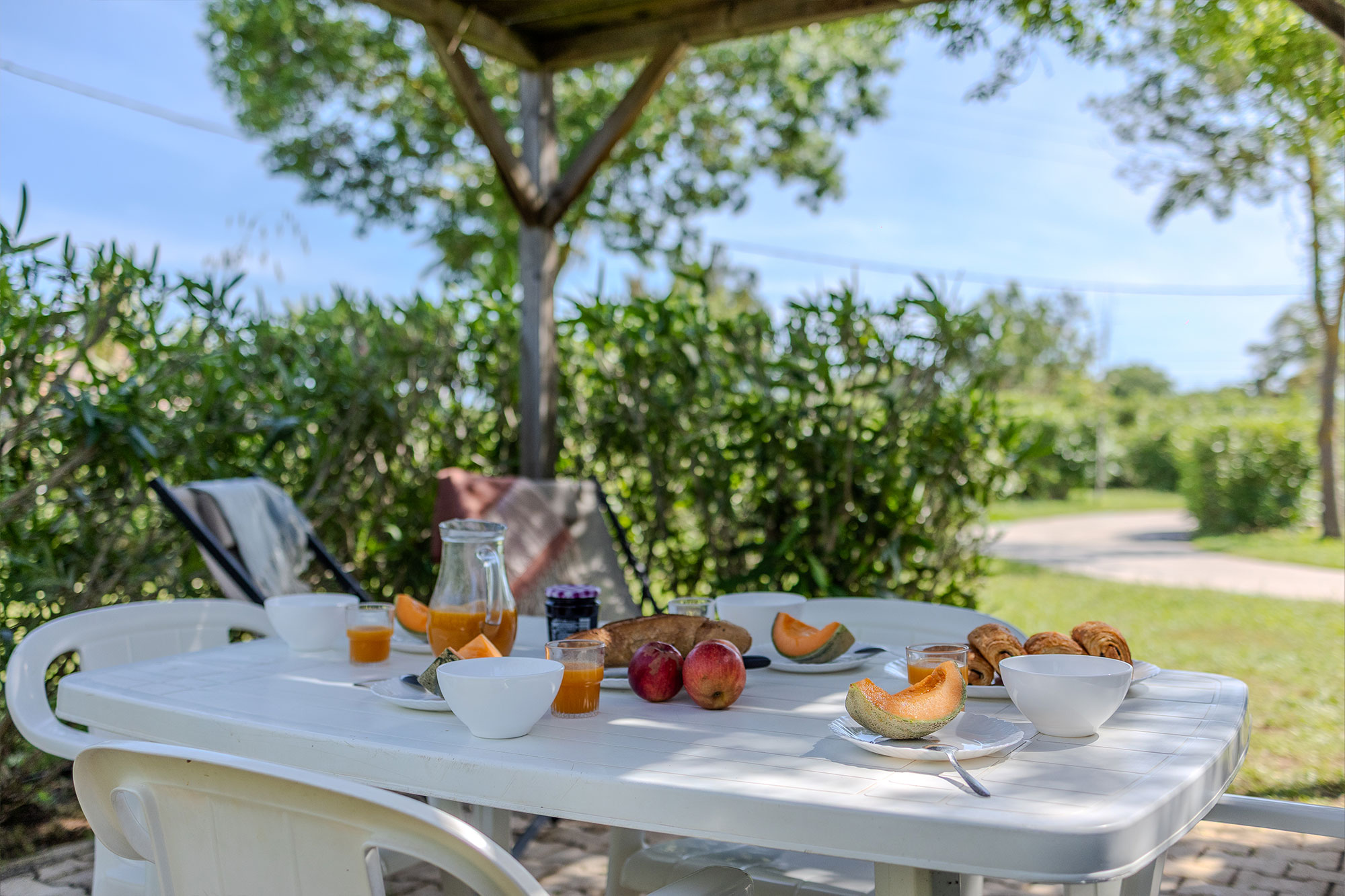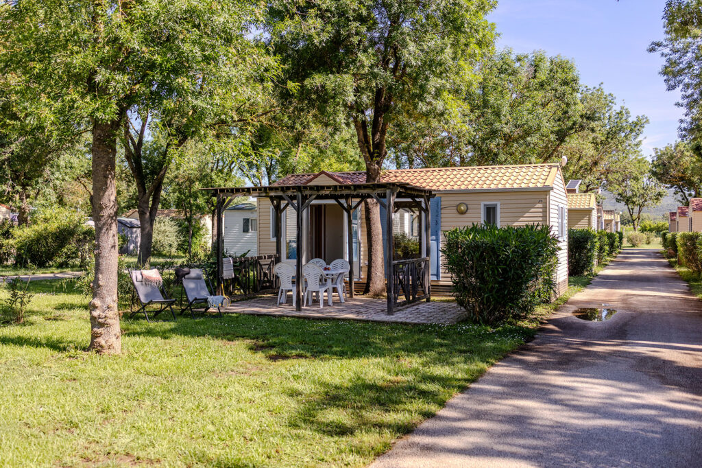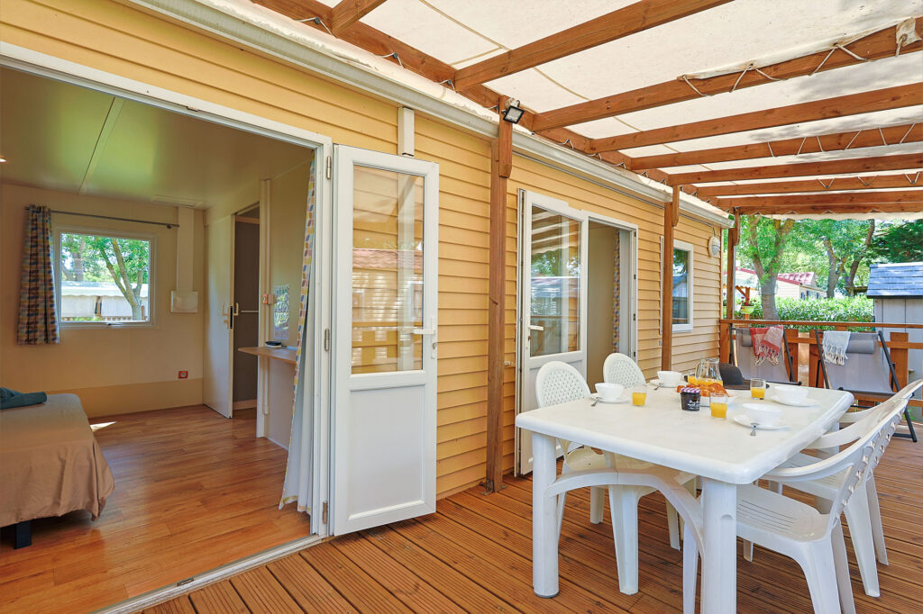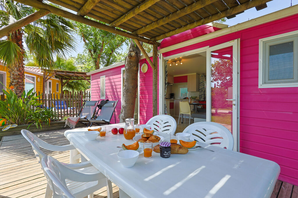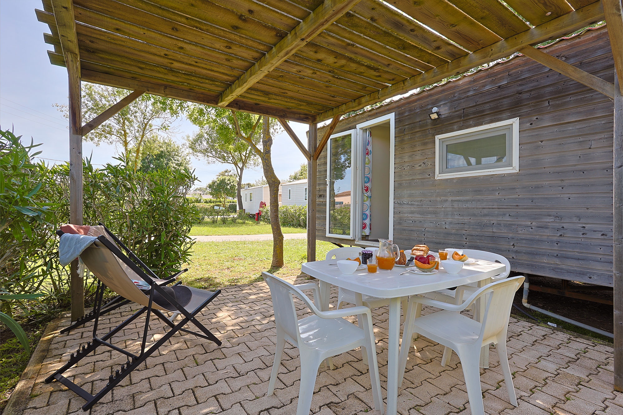Onze stacaravans zijn allemaal uitgerust met een groot privéterras om de tijd te nemen om elkaar te ontmoeten, te genieten en uit te rusten.