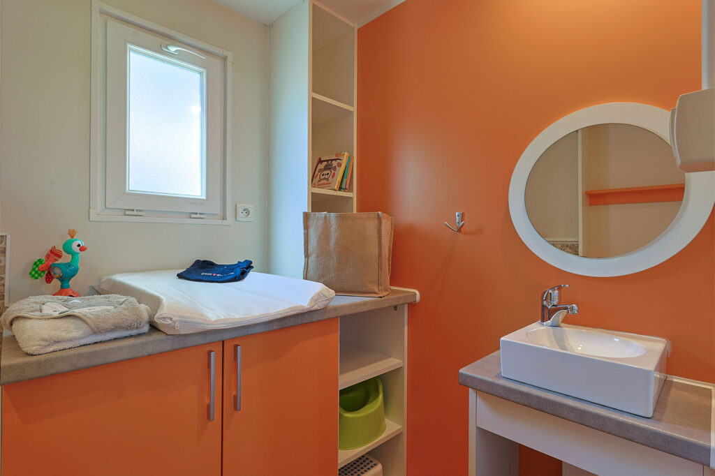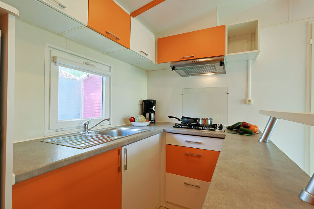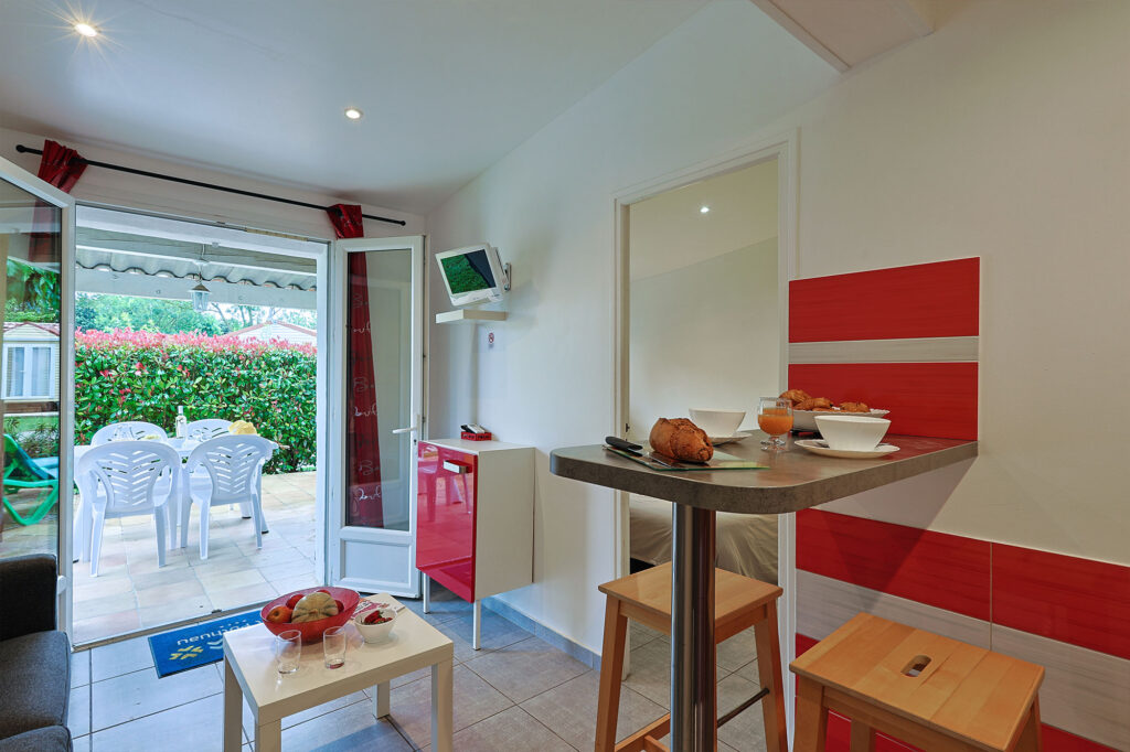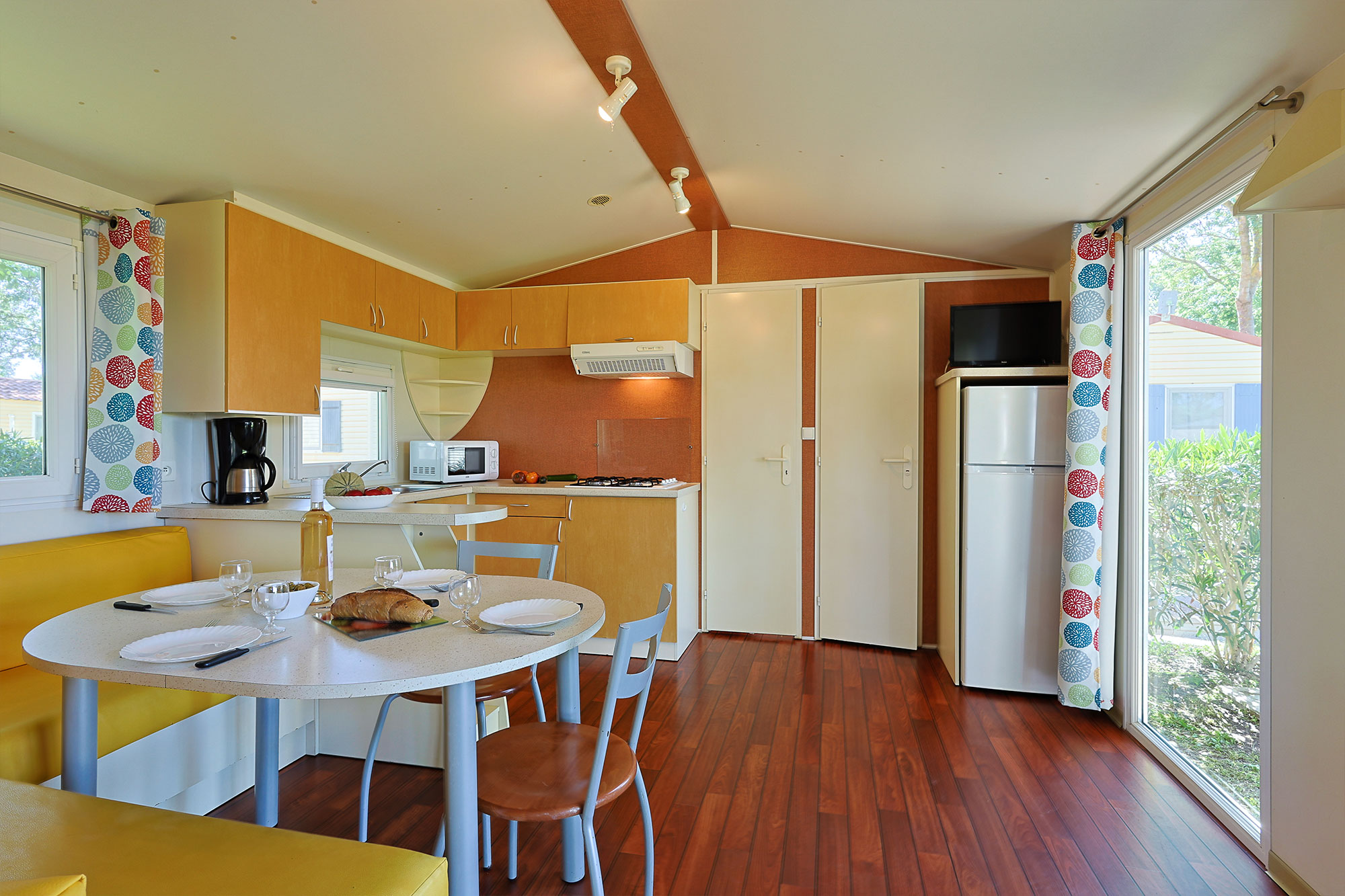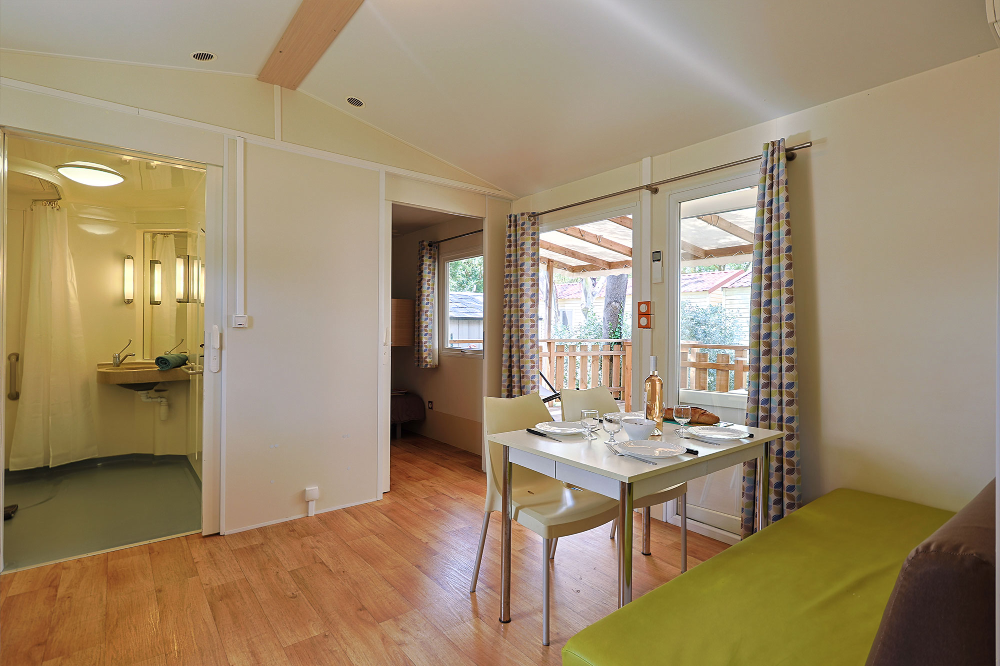 We hebben ook gedacht aan mensen met beperkte mobiliteit met de faciliteit. Profiteer voor uw volgende vakantie in het zonnige Hyères van een zeer comfortabele stacaravan voor gehandicapten met een terras dat toegankelijk is via een houten oprit, laag keukenmeubilair om het dagelijks leven te vergemakkelijken en een aangepaste doucheruimte.