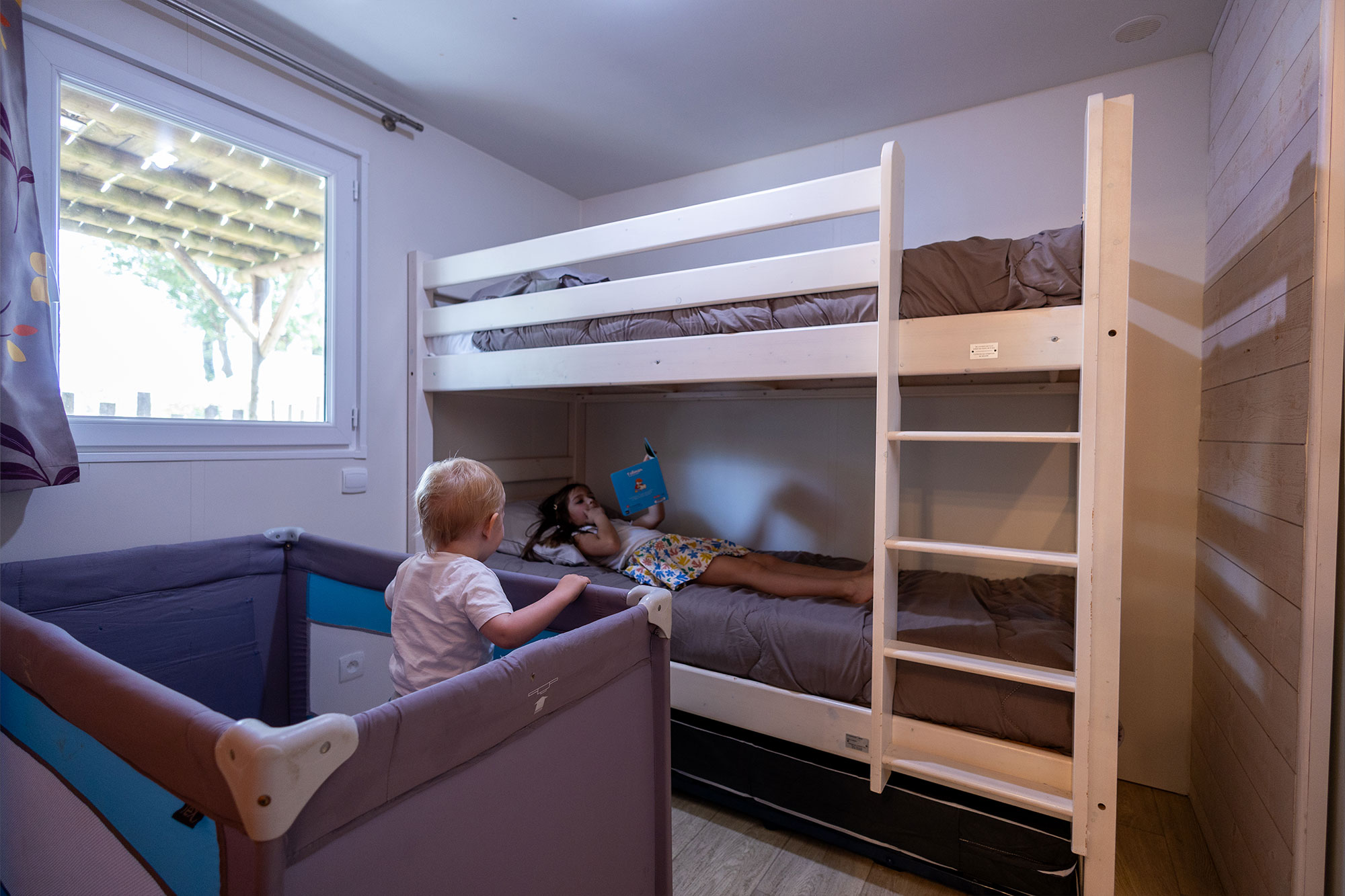 Als u met uw gezin en uw kleintjes op vakantie gaat, is de stacaravan Family Kids voor u ontworpen met zijn 2 badkamers, waarvan één volledig is aangepast aan het kindertoilet en één voor de ouders. Heeft u 3 slaapkamers nodig, kies dan voor de Cosy XL. Voor geliefden is de Cocoon Bungalow of de Cosy 4 ideaal.